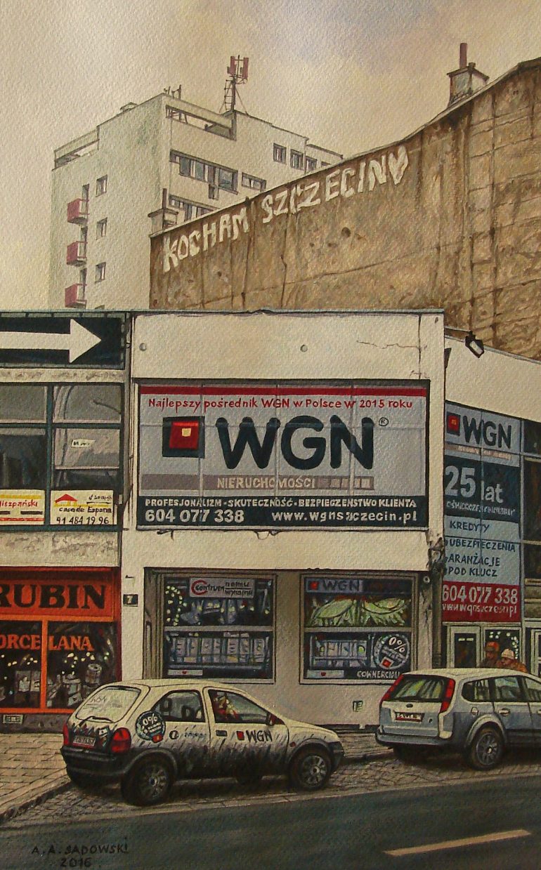 Miasto w malarstwie: Andrzej Adam Sadowski 25 listopada 202526 listopada 2025 dm Andrzej Adam Sadowski, Kocham Szczecin (2016), akryl, papier